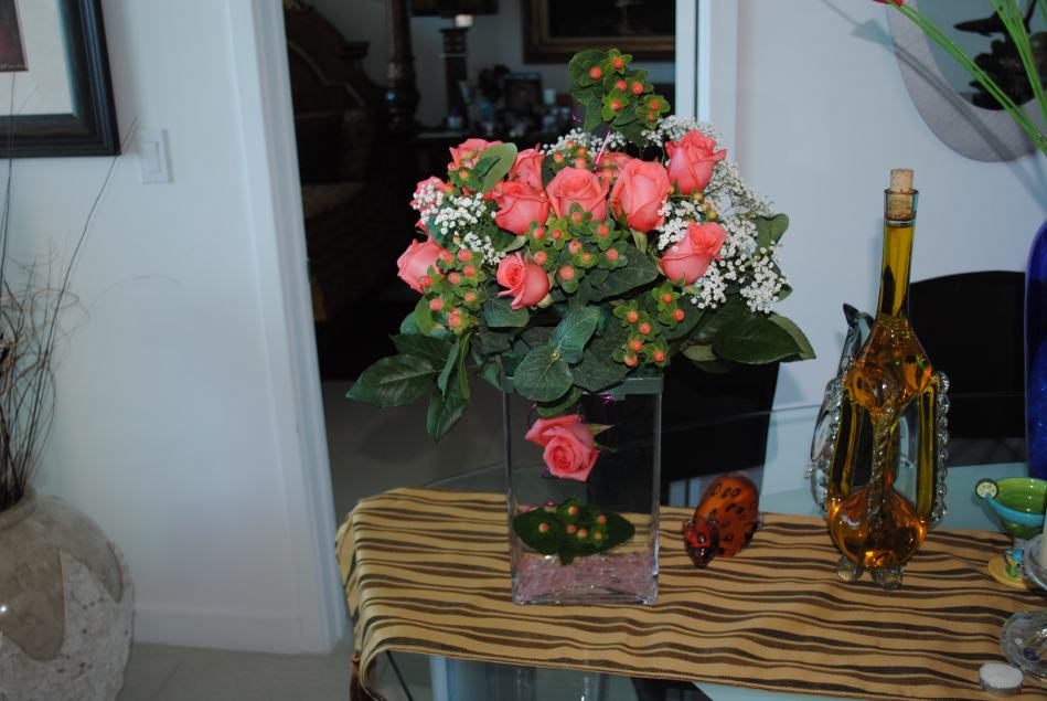 Nice arrangement! I do hope the flowers are real though. If you like flowers, just wait until you see Karen’s garden. Even I’m amazed and I see it all the time. You could spend all summer just taking pictures in it.